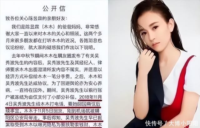 2019年1月,陈昱霖父母通过社交媒体发布公开信,指控吴秀波方面先是承诺支付分手费进行和解。