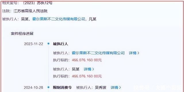 不过,这4.66亿元的执行标的只是开始,2024年10月,因未履行另一笔2.16亿元的案款,吴秀波被正式列为失信被执行人。