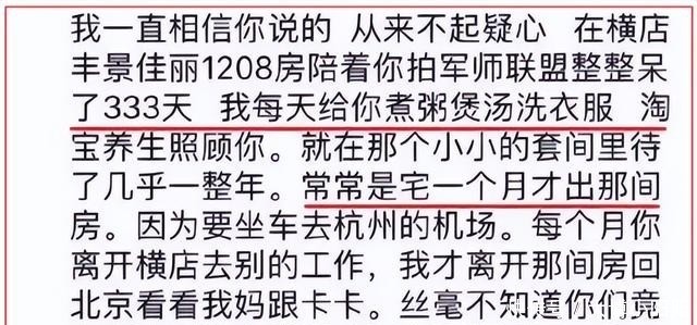 她详细描述了自己与已婚的吴秀波维持长达七年的地下恋情,期间甚至为对方放弃演艺事业,在横店为他洗衣做饭、悉心照料。
